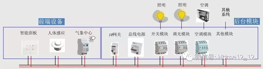 Bticino和伟迈(VIMAR)都是意大利首屈一指的知名品牌,采用的也是KNX架构,两芯总线,既供电,也走信号。无主机分散式架构,每一个模块里面有自己的cpu和存储器,即使损坏线路上的任意一个不影响系统安全。