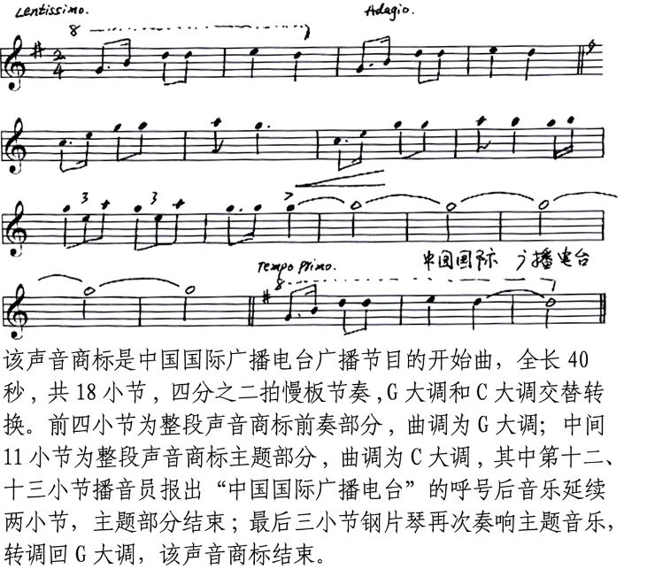 我国2014年修订的商标法第八条将可以作为商标申请注册的标志中增加了声音商标,根据《声音商标形式和实质审查标准(试行)》所述,声音商标是指由足以区别商品或服务来源的声音本身构成的商标。既可以是由音乐性质的声音构成(如下图一),也可以是非音乐性质的声音构成(如下图二),也可以是二者兼有的声音构成。我国首例核准注册的声音商标是中国国际广播电台申请注册的“中国国际广播电台广播节目开始曲”,声音全长40秒,于2016年5月14日成功获得注册。