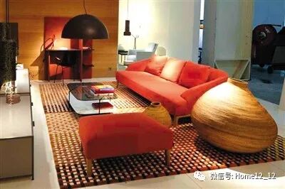 借鉴:ligneroset推出的暖红色的客厅系列,在灯光的映衬下显得更加热情洋溢,暖融融的气氛迎面扑来。宽大的布艺沙发组合整体造型时尚,橘红的色调彰显了青春活力,与红棕色系的网格编织地毯相呼应,暖意十足。搭配深色的透明玻璃茶几和白色矮柜,组成一个温馨的休闲会客区。