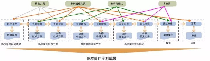 同时,提升专利的质量需要多方面人员的配合和共同努力,具体包括研发人员的创新成果、企业专利工程师的挖掘和布局、专利代理人的撰写和审查答复、专利审查员的细致严谨审查,各方共同努力下形成的。高质量的专利需要在专利的全生命周期过程中,由多方协同合作,共同提升专利的质量,对相关技术形成专利保护,最终通过专利运营释放专利的价值。