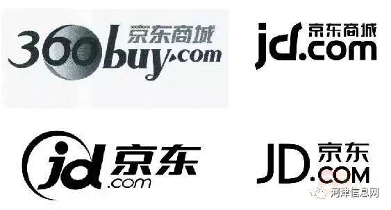 这是不同时代的京东主商标,每更换一次VI,都伴随着一次商标的补充注册。这是因为我国《商标法》规定,商标使用必须严格按照《商标证》所载项目及图形进行使用。经过变形使用的商标,极容易出现使用证据在庭审阶段不被认可的状况,所以,伴随VI升级时的重新注册商标行为是非常必要的,但这一点很容易被企业忽视。