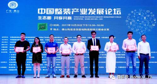 主持人:下面进行授牌仪式,有请天进、萨米特、英皇卫浴、尚品宅配、贝朗、酷家乐、三维家、百年管、银马,有请各位代表上台授牌。