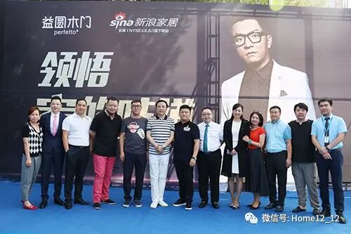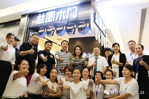 辛晓琪与汤潮先后来到益圆木门专卖店并与嘉宾合影