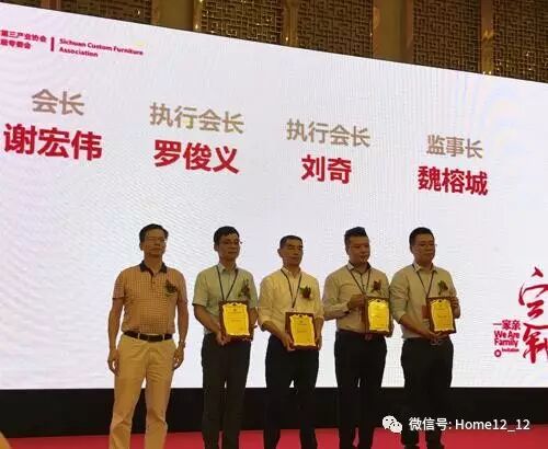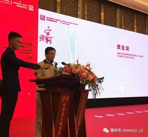 四川省定制家居专委会的成立离不开每一位定制家居人的辛勤付出与努力,也离不开四川省第三产业协会的大力帮助与关怀。成都成飞物业服务有限责任公司总经理、四川省第三产业协会副会长贾全龙对川派定制家居已经取得的成绩表示热烈祝贺,并现场宣读了《四川省第三产业协会定制家居专委会成立文件》,宣告谢宏伟任首任会长、罗俊义及刘奇任执行会长、魏榕城任监事长、苟汪任秘书长。现场由贾全龙为四川省定制家居专委会第一届领导班子颁发证书。