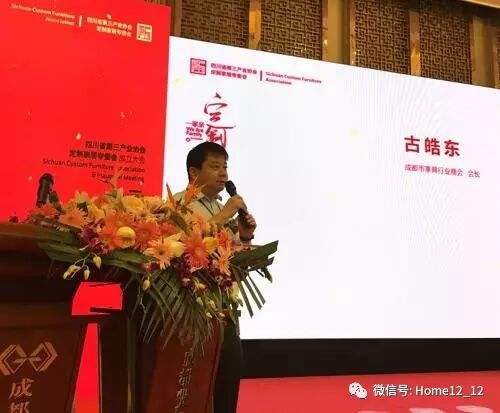 成都市家具行业商会会长古皓东简要阐述了川派定制家居近年来取得的成绩,同时表达了对定制家居行业前景的看好。古皓东希望川派能够全方面加强与外界的交流,特别是与广东定制家居企业的交流,同时希望成都市家具行业商会与四川省定制家居专委会能够更紧密的合作,共同为家居大行业发展贡献力量。