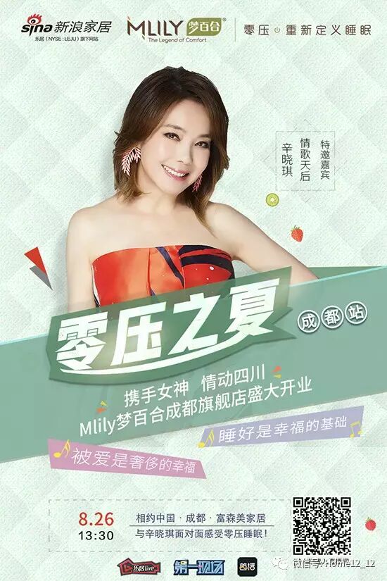 8月26日,Mlily梦百合成都旗舰店正式开业,情歌天后辛晓琪会来富森美给你传授“减压的秘籍”,还有全场折上折、满额返现等前所未有的活动等你来。