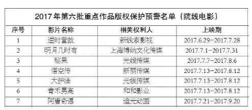 【知产动态】2017年度第六批重点作品版权保护预警名单发布