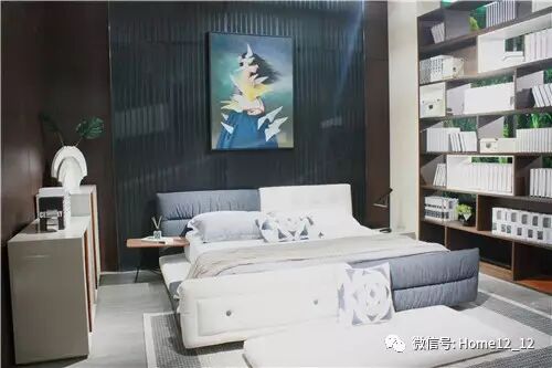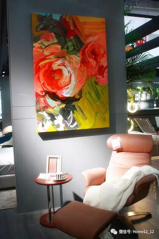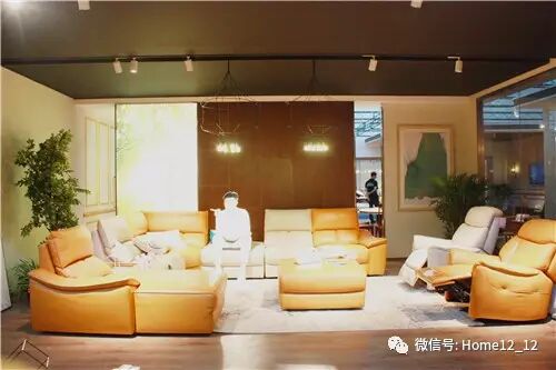顾家家居1200平方米的规模在展厅中十分显眼,主要推出了睡眠中心、功能系列和布艺三种品类。无论是功能沙发还是明星床垫主打舒适度的顾家在材料、智能方面下了不少功夫。有款沙发甚至同一面的四个部分填充都不一样。而在展位的装饰上,随处可见的绿植突出顾家的生态理念,电视、装饰画等配置也是更多的营造出了家的氛围。