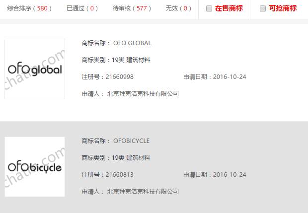 有了“嘀嘀打车”商标赔偿几千万的前车之鉴,ofo更加注重自身的注册商标保护意识,其商标布局涵盖了全部商标及服务类别,而且还防御性申请注册了“小橘车”“小蓝车”“ofc”“OFG”等商标。我们可以看到,拜客洛克科技公司,申请了580件商标,这可以看出他们对商标的重视。