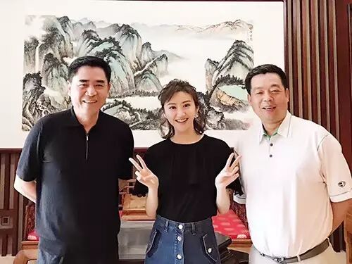 居然之家董事长汪林朋与居然之家形象代言人陈宝国、景甜合影