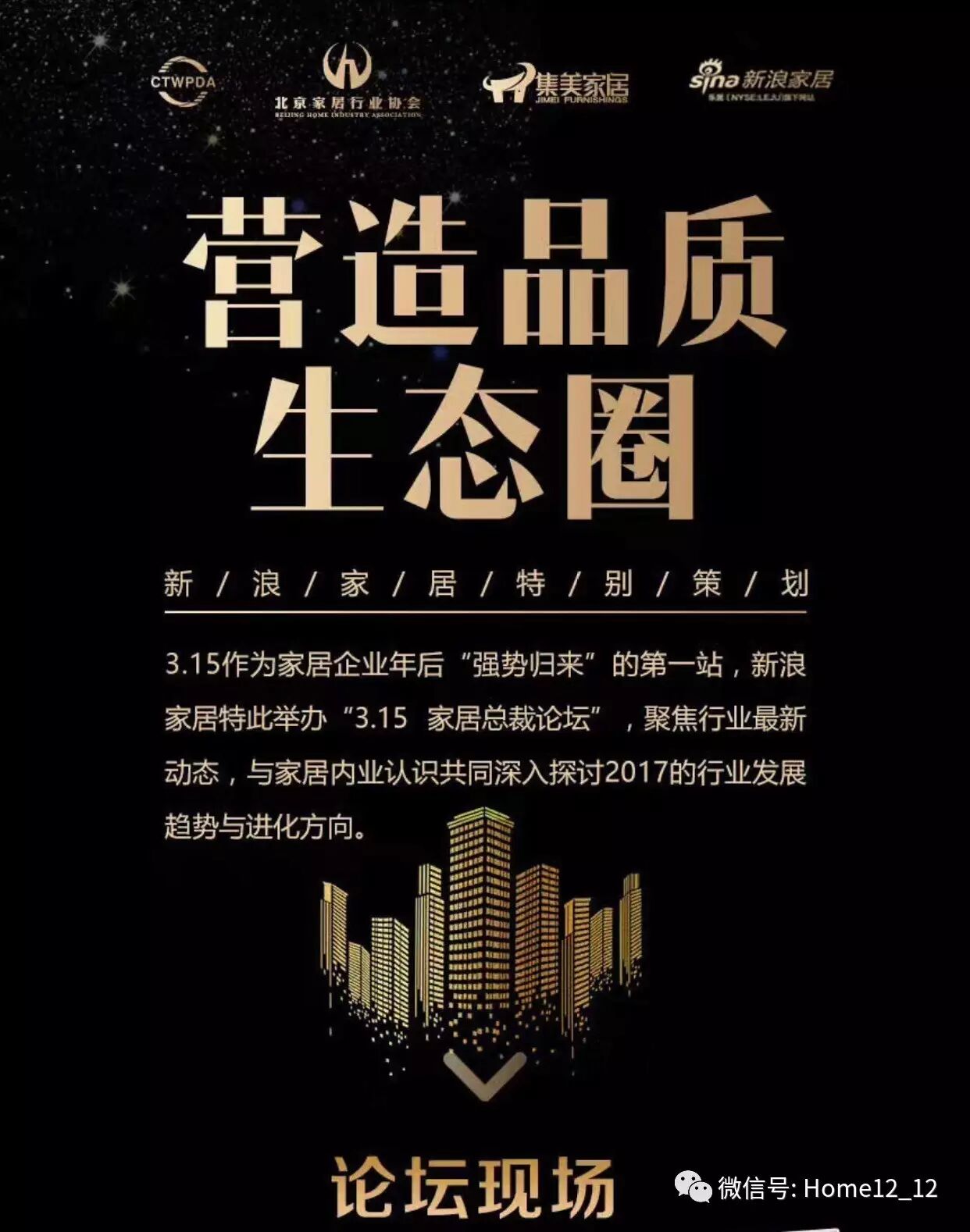 3月12日,“315总裁论坛”在北京集美家居大红门商场举行,来自家居行业的总裁级大咖,以“营造品质生态圈”为主题,深入探讨2017的行业发展趋势与进化方向。