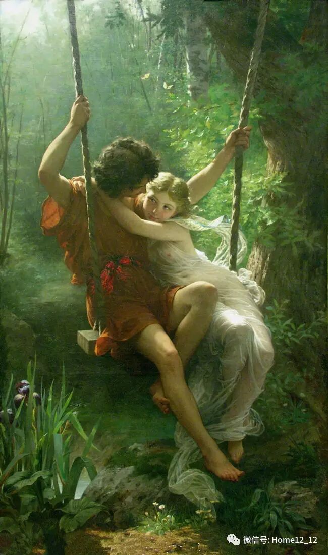 在法国画家皮埃尔·奥古斯特·库特笔下,春天是爱情的味道,在《情侣的秋千》这幅名画中,无论是透过森林打到情侣身上的阳光,还是秋千上眉目含情的情侣,都如此的浪漫、唯美。