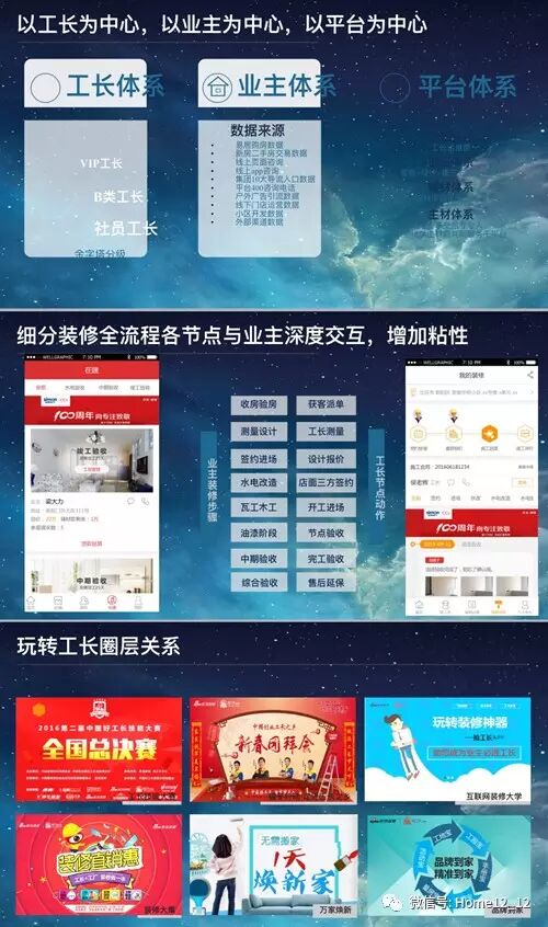 抢工长,作为基于施工服务的C2C互联网平台,真正将工长和业主亲密无缝连接。它不仅为工长和业主细分装修流程各个重要节点,还可以与业主进行深度交互,增加粘性。
