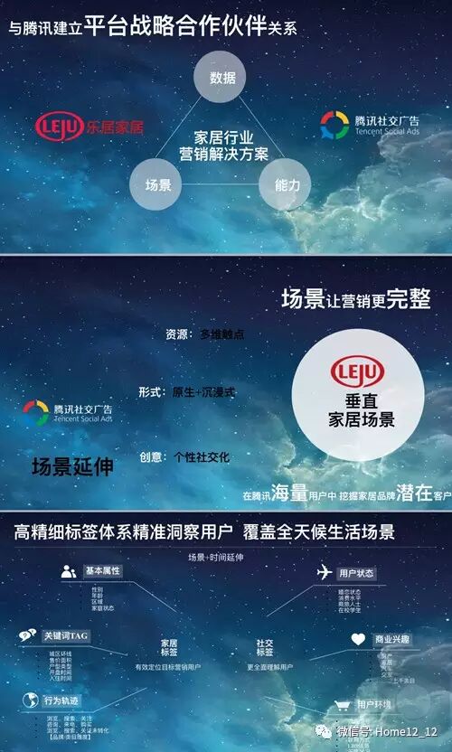 今年,乐居家居最令人期待的变化当属腾讯的加入!腾讯作为乐居的第二大股东,将全面助力乐居打造大数据智能精准投放平台。这个脑力极为聪慧的大数据平台,将垂直家居场景进行全方位多维度、沉浸式及个性社交化的场景延伸。在乐居、腾讯双平台下擦亮慧眼洞察家居行业人群,挖掘家居品牌潜在客户。2017年新媒体阵营还将推出家居慧效产品,与腾讯数据对接,基于用户行为分析及购房数据分析圈定精准投放区域及人群,瞬间将种子用户10倍扩展!同时将结合新浪新闻、腾讯新闻、UC头条等媒体资源对头条消息高强度曝光,真正做到一次投入,四屏连发,精准传播。