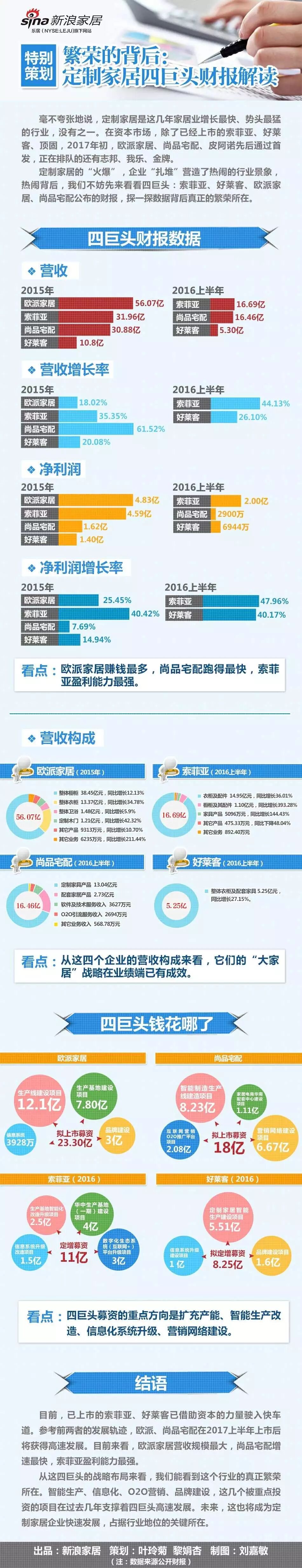 从这四巨头的战略布局来看,我们能看到这个行业的真正繁荣所在。智能生产、信息化、O2O营销、品牌建设,这几个被重点投资的项目在过去几年支撑着四巨头高速发展。未来,这也将成为定制家居企业快速发展,占据行业地位的关键所在。