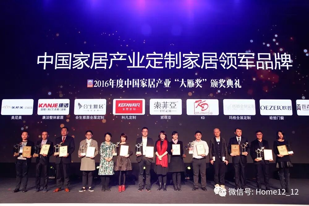 1月7日,由11大协会联合新浪家居共同打造的第四届中国家居产业发展年会暨2016年度中国家居产业“大雁奖”颁奖盛典 在北京国家会议中心举行。康洁整体家居荣获“中国家居产业定制家居领军品牌”奖。