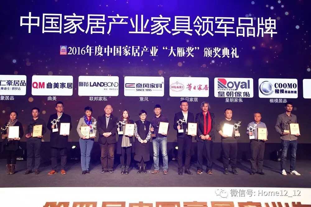 1月7日,由11大协会联合新浪家居共同打造的第四届中国家居产业发展年会暨2016年度中国家居产业“大雁奖”颁奖盛典 在北京国家会议中心举行。荣麟家居荣获“中国家居产业家具领军品牌” 奖项。