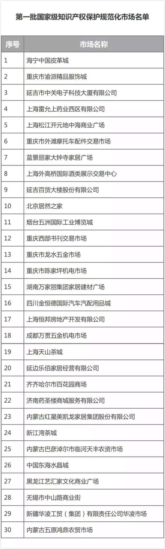 第一批国家级知识产权保护规范化市场名单公布 这30家市场上榜