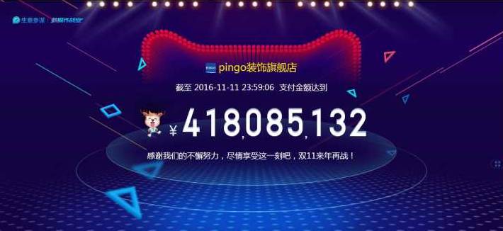 2016年双十一,PINGO国际以4.18亿的单日销售额成为家装行业的销售冠军,...