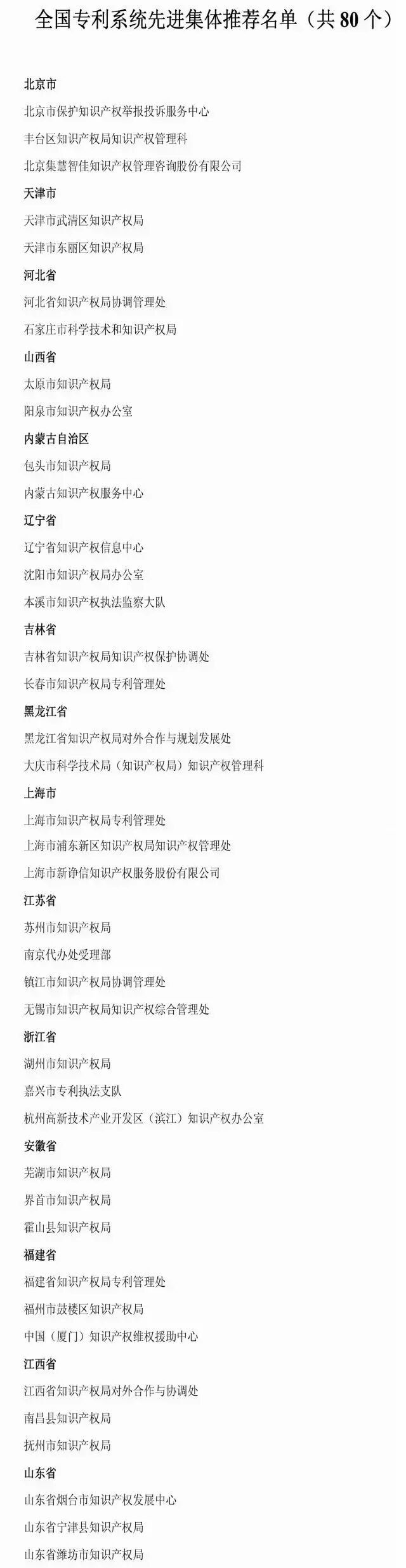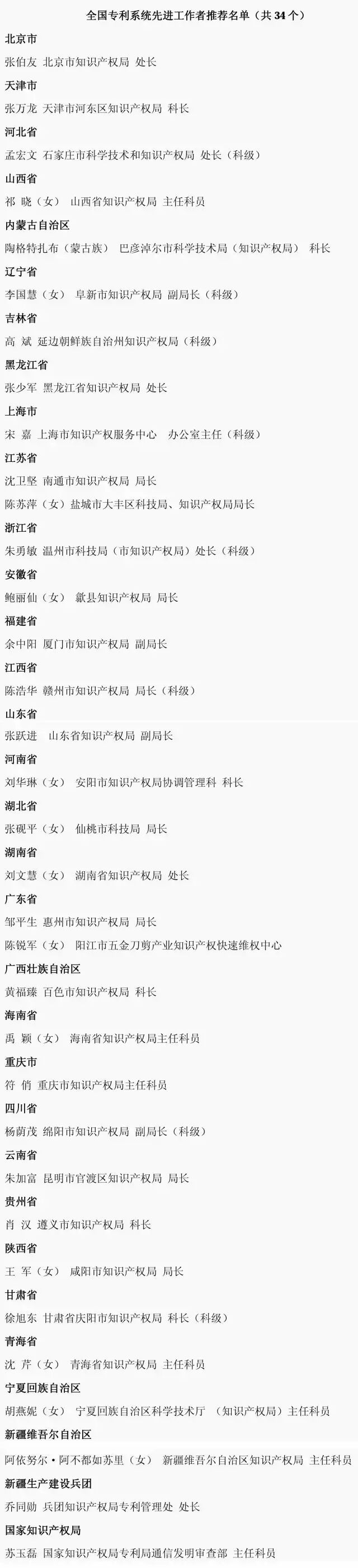 / 全国专利系统先进集体和先进工作者拟表彰名单公示