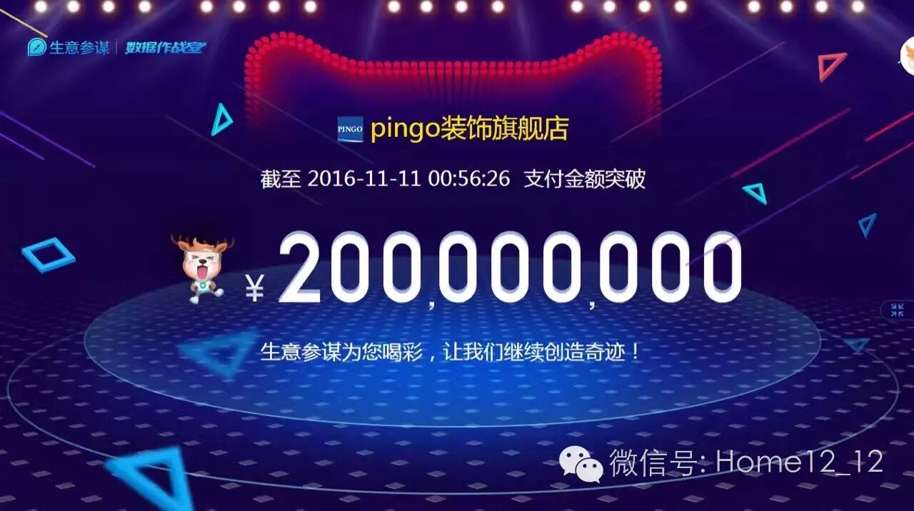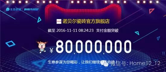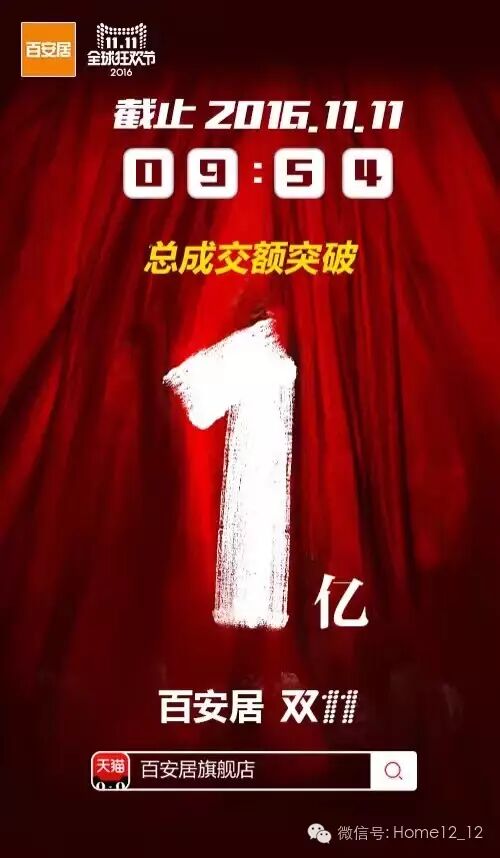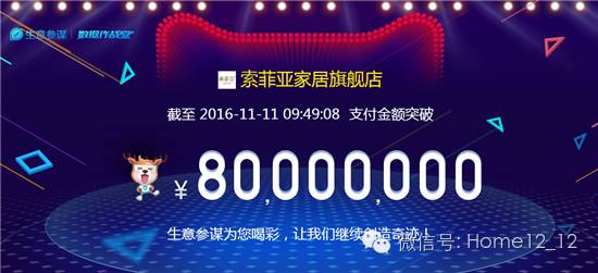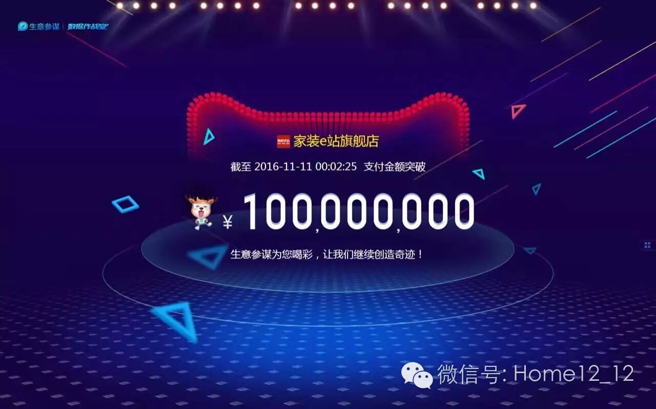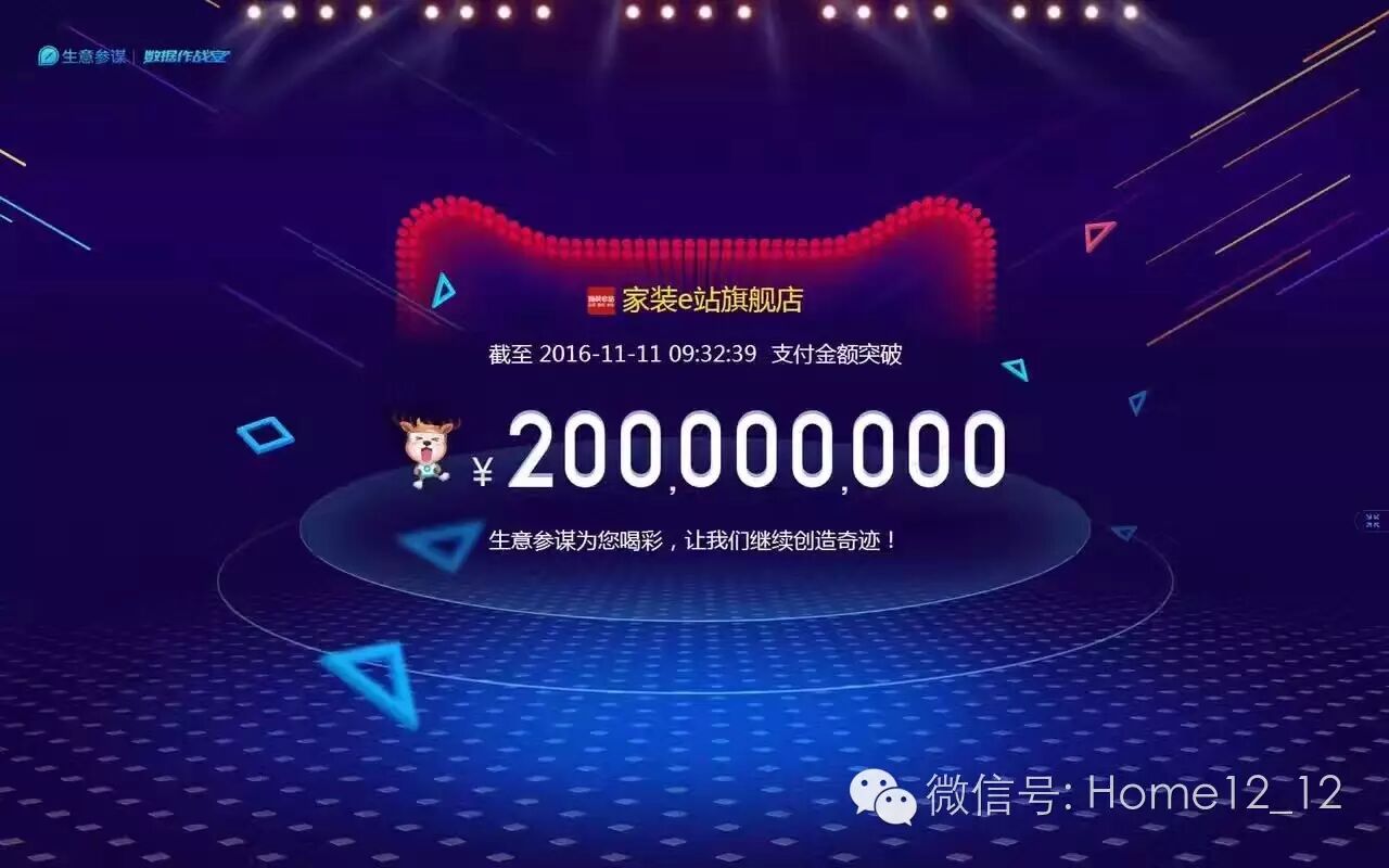 家装e站最新战报:11月11日上午9点32分破2亿大关。