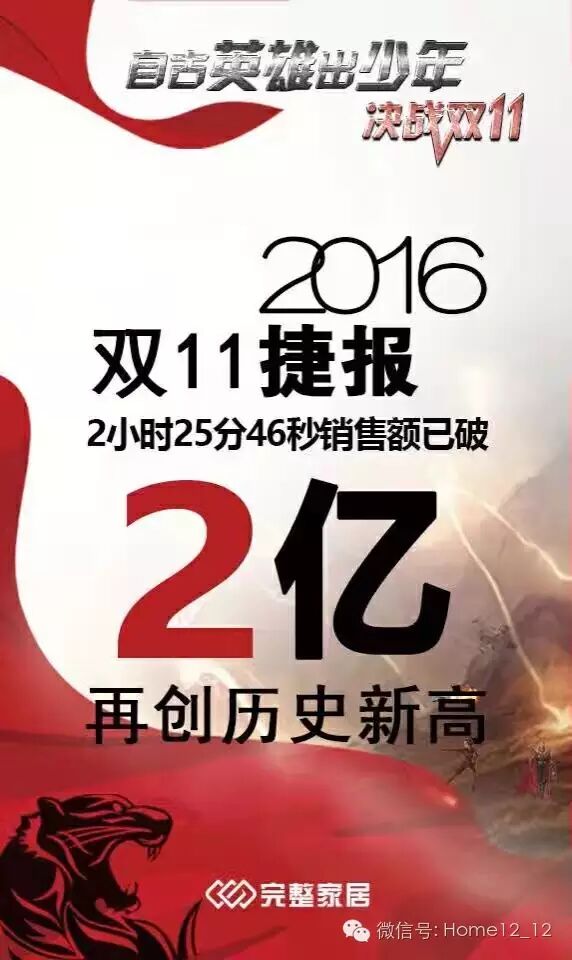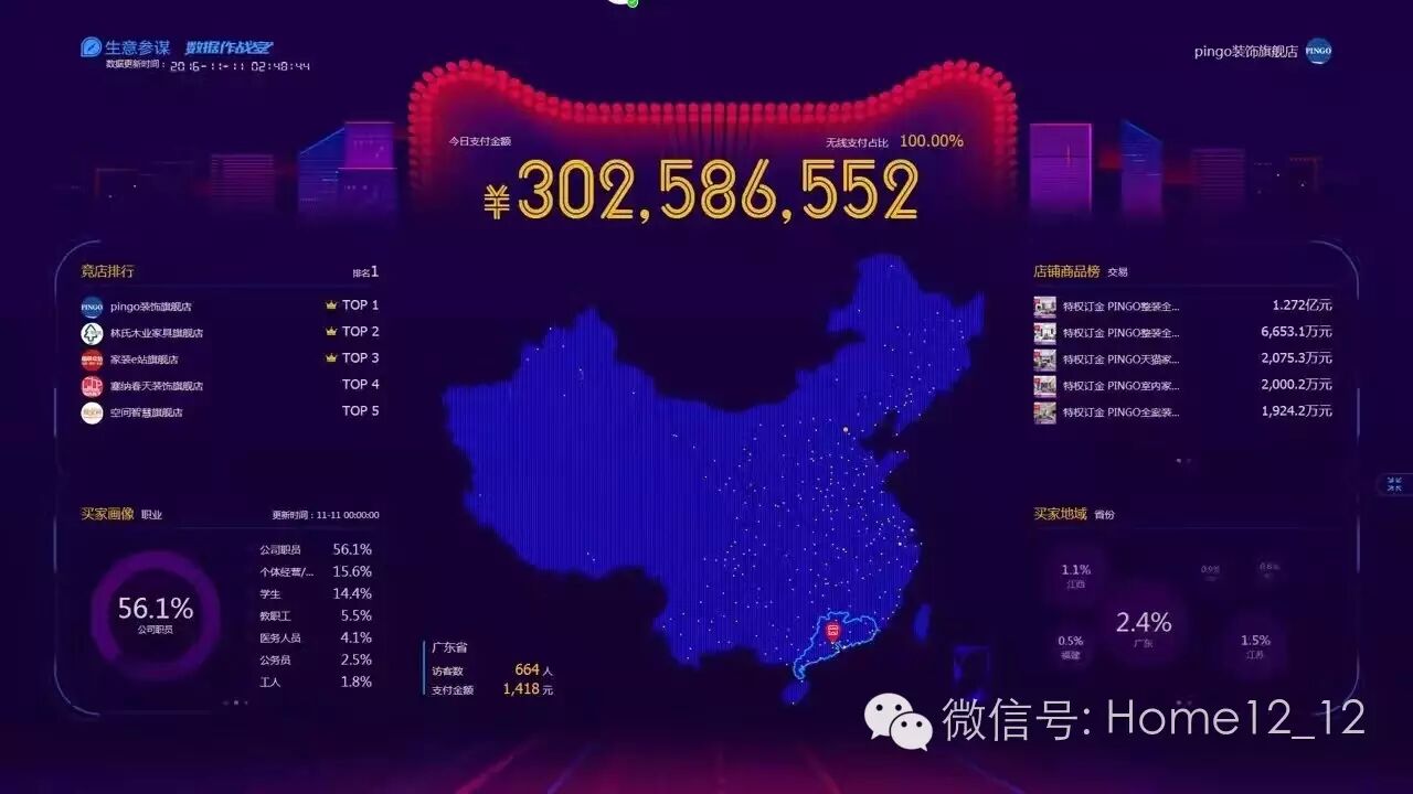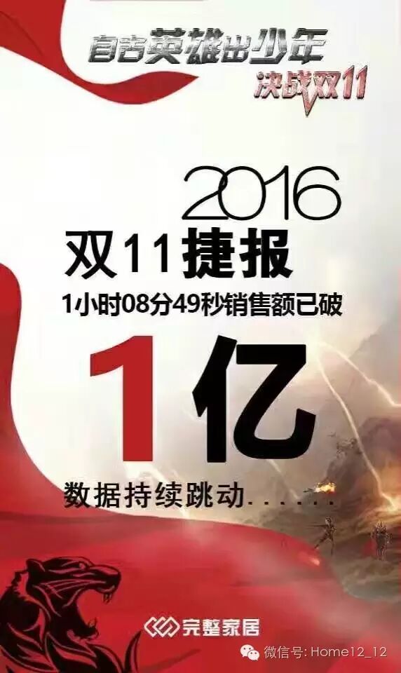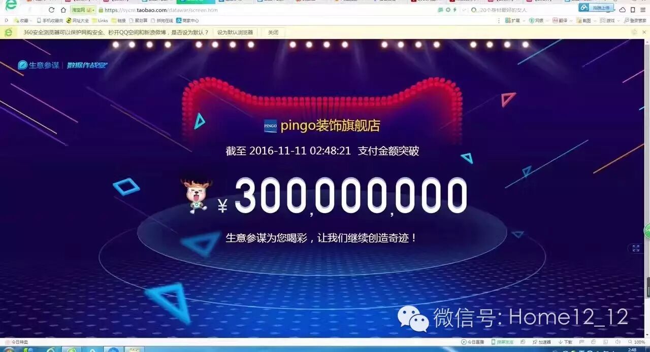 家装e站最新战报:11月11日上午9点32分破2亿大关。