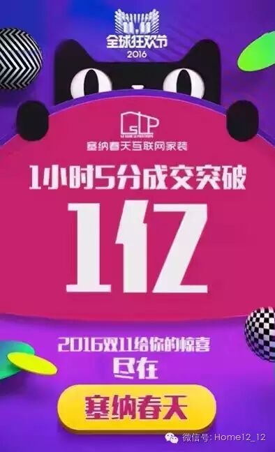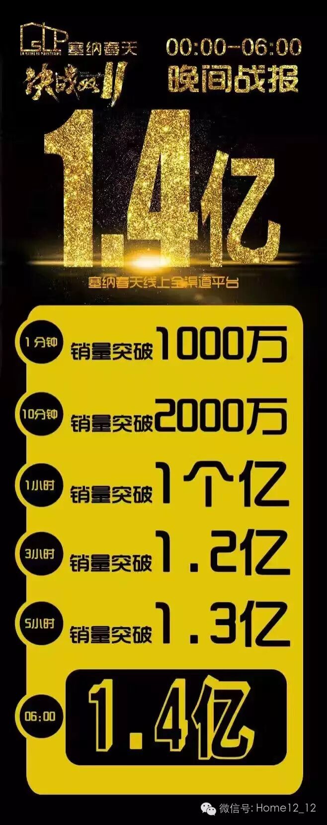 1小时5分钟,塞纳春天装饰旗舰店支付额突破1个亿!