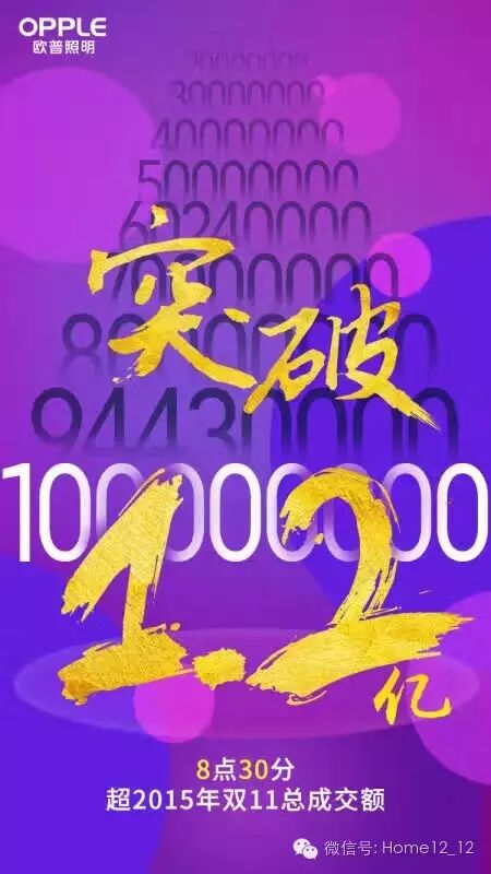 截至8:30分,欧普照明突破1.2亿元,超2015双11总成交额。