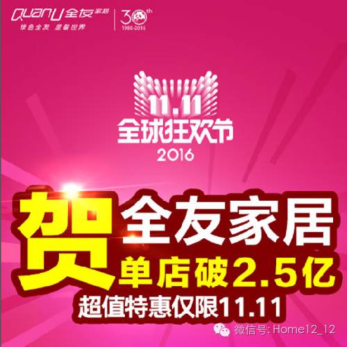 11月11日10:00,全友家居单店销售额破2.5亿!