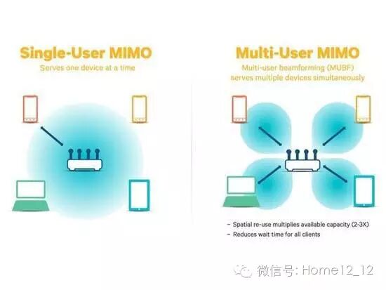 最后便是MU-MIMO(多用户多输入多输出)架构的使用。与传统802.11n时代的MIMO不同,MU-MIMO可以让无线路由器同时和多个无线终端进行通讯,大幅提升网络容量能效。