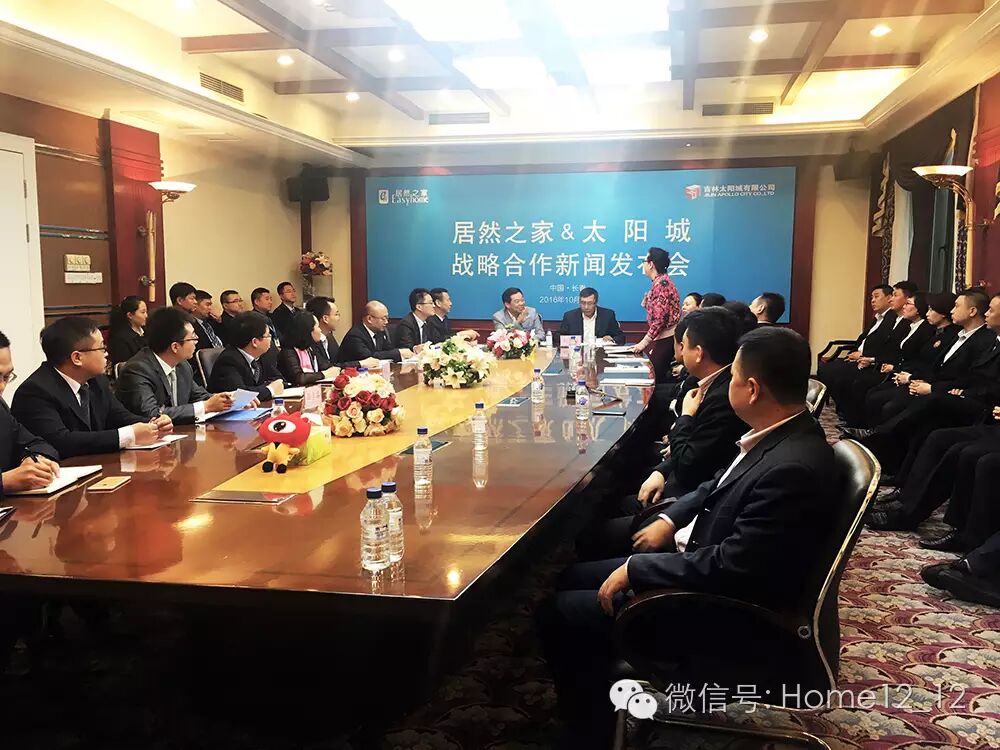 10月10日,国庆长假后的第一个正式工作日,居然之家董事长汪林朋率领一众高管前往长春,与吉林太阳城董事长刘作斌带领的高管团队见面,并举行战略合作发布会。