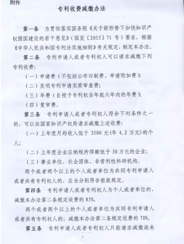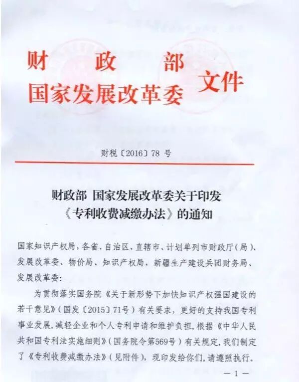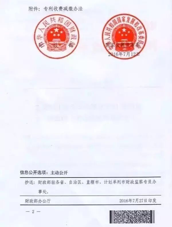 2016年8月2日,浙江省知识产权局网站发布“财政部 国家发展改革委关于印发《专利收费减缴办法》的通知”,详情如下: