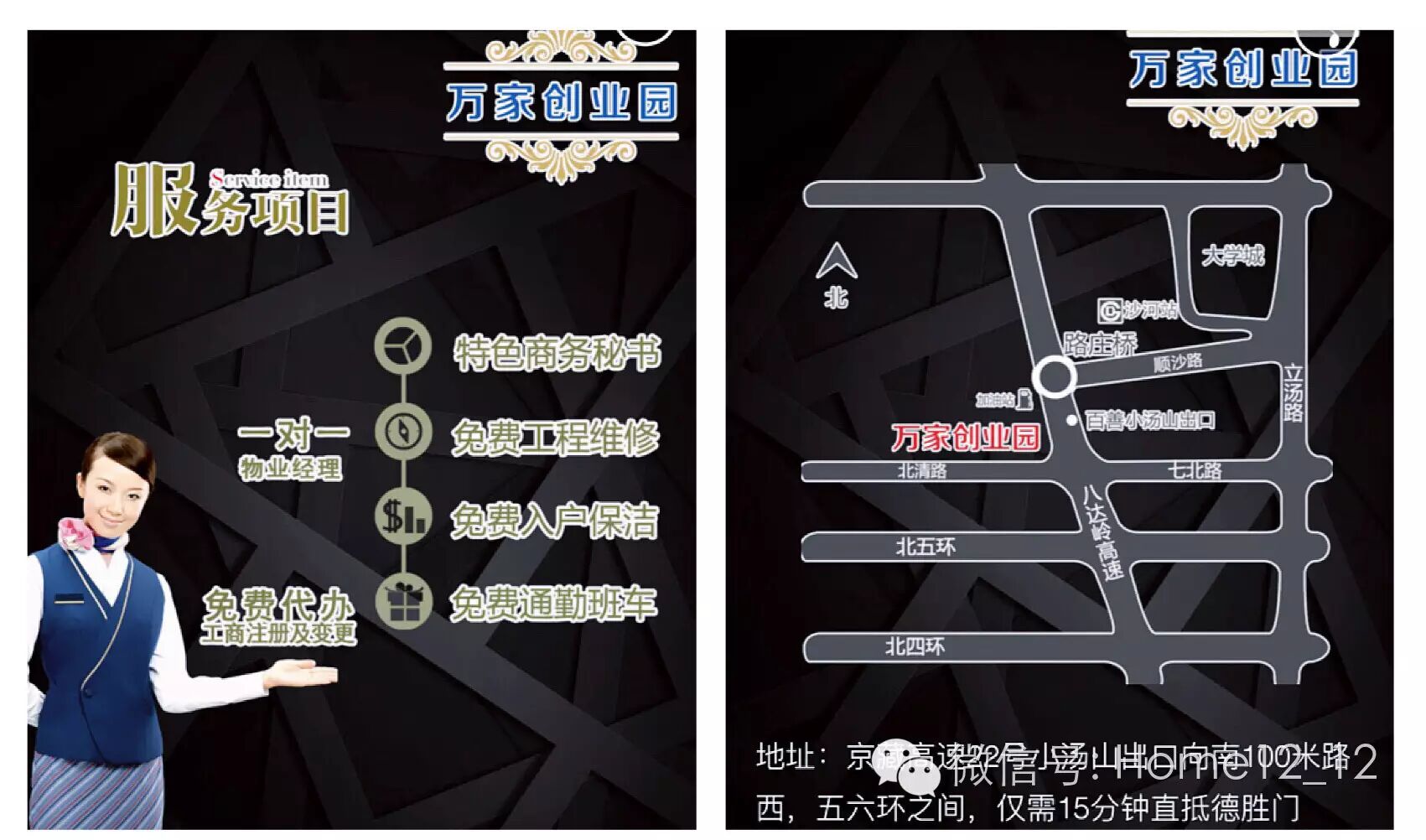 有这先天的优势,建成后的万家创业园将致力于为中小企业办公提供解决方案,在服务管理上,会对中小企业提供公共人力资源服务,包括免费的商务秘书、财务管理、入户保洁、工程维修、通勤班车、快递服务等,另外还可以免费代办工商注册及变更等业务。这些服务都将是非常全面和专业的,而且成本都包含在租金里。