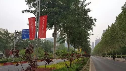 在道路两侧路灯灯杆悬挂“加快知识产权运用、建设知识产权强区”、“保护企业知识产权,打造维权优越环境”的宣传标语灯杆旗,营造良好的氛围