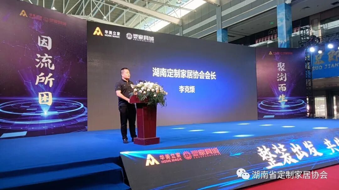 我会会长李克烦代表协会表达了对项目落成的祝愿,并表示行业创新模式的兴起象征湖南家居建材行业的崛起和飞跃,同时希望借助本次行业峰会,产业上下游供应链能真正实现从产/销/终端一体化的转型,从而完全家居建材行业的共生共赢!
