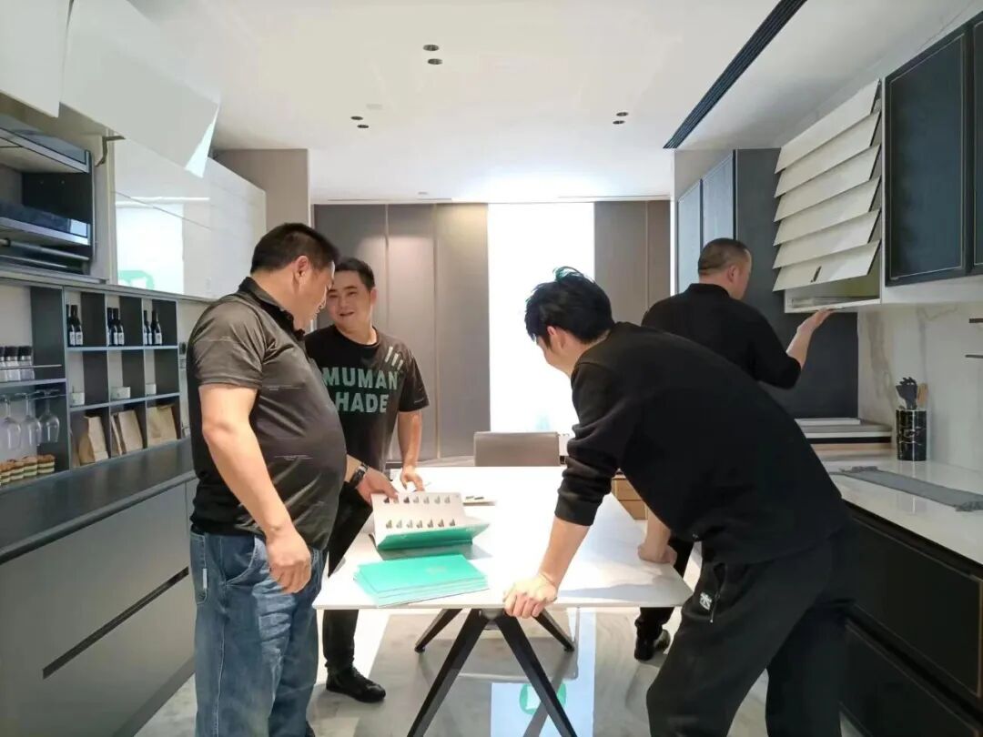 参观尾声,刚好遇到几位慕名而来的吉首客户,对天地人的品牌和品质非常感兴趣,特地来拜访祝董。祝董热情接待并为客户解说起石材和五金的品质优劣,每种类型的材质详细介绍、对比,并按客户需求推荐更适合他们的材料,实实在在,满满干货。祝总表示:我们不要抱着成交的想法去谈客户,你把客户当朋友交流,站在他们的立场考虑问题,即便不成交,下次他还会想起你。