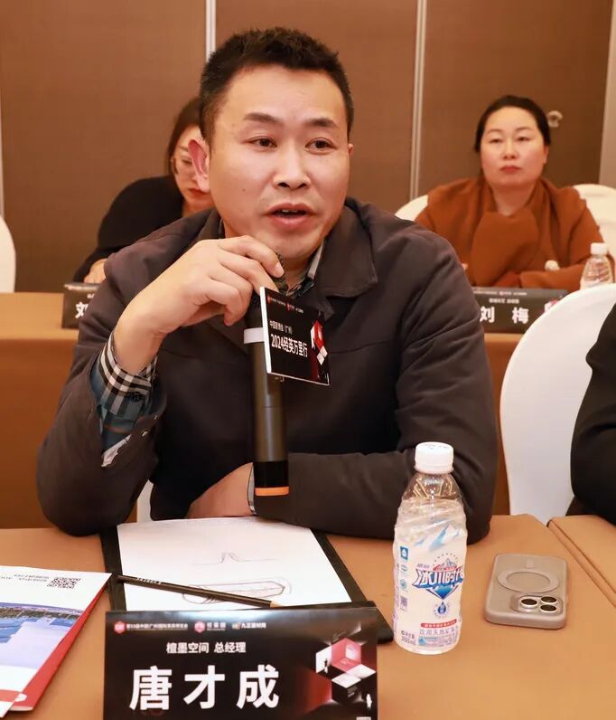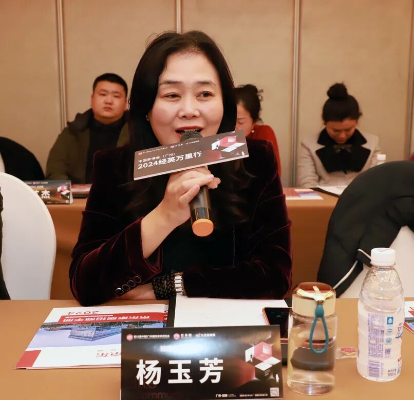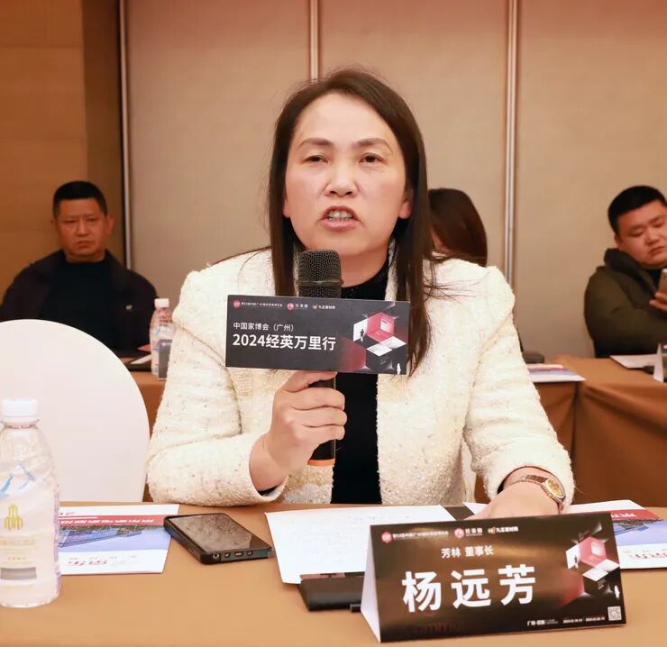 芳林董事长杨远芳表示做企业要深入一线市场,发现趋势、提高生产工艺和技术,制造出领先产品;都市王朝营销总监王文峰表示做企业一定要专业化,高度的向内看,强大和填充自己;臻雅塘董事长杨玉芳表示市场有压力,企业要变压力为动力;维度空间新材运营总监叶云表示,企业要练好内功,优化产品,生产有灵魂的产品。