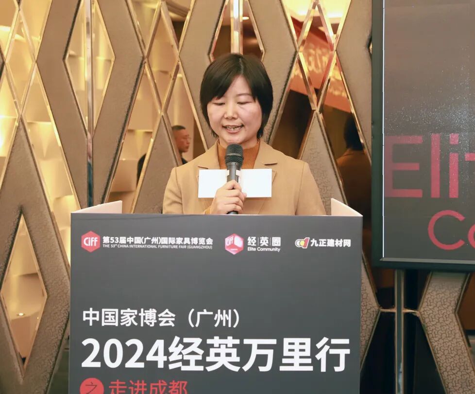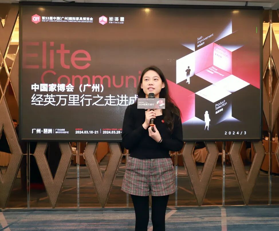中国家博会(广州)经英圈负责人张苏煜介绍了国家政策层面关于家居行业一系列利好消息,从平台赋能、品牌赋能、渠道赋能三大方面分享了2024中国家博会(广州)的平台优势,并进行了行业趋势解读,希望大家对2024年的家居市场充满信心,对中国家博会(广州)有新的认识。