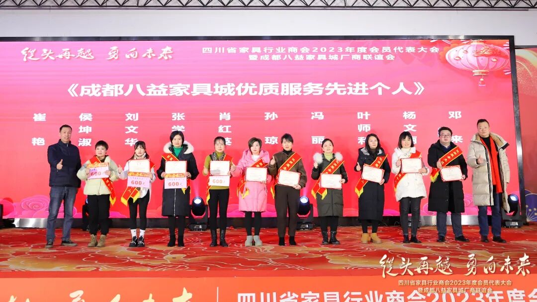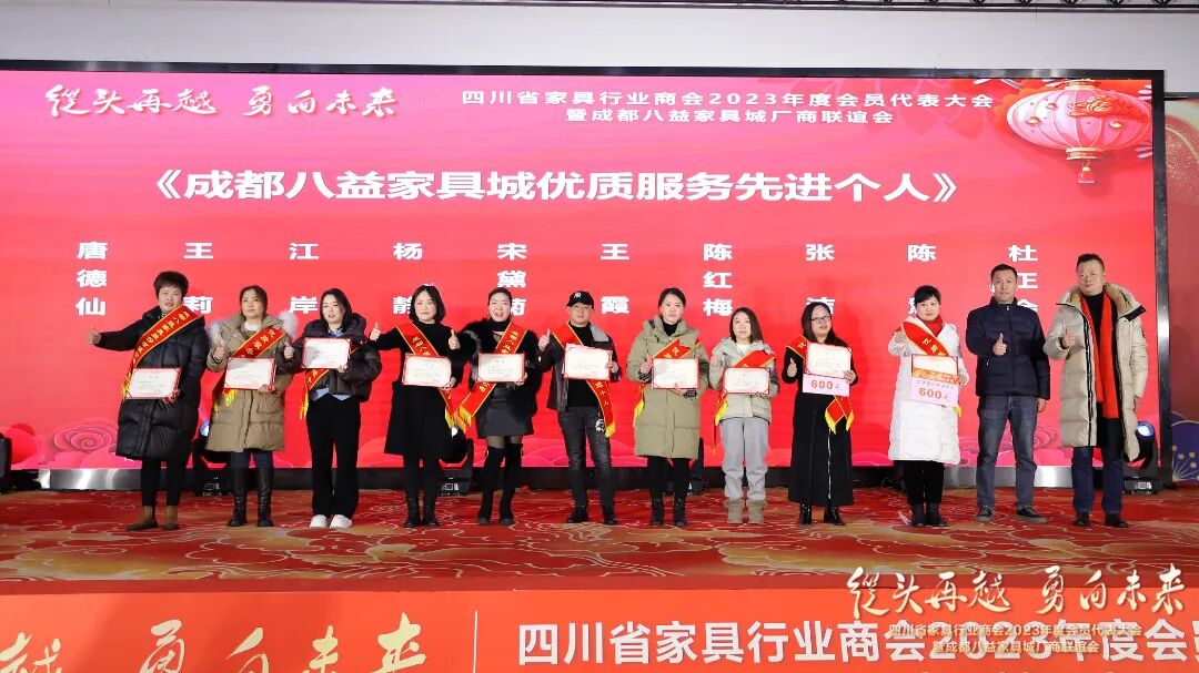 会议还颁发了成都八益家具城的专项奖,成都八益家具城为推动诚信经营、优质服务持续深入开展,经过全面考察、综合评比,对43家《成都八益家具城五星信用商家》,50名《成都八益家具城优质服务先进个人》进行了表彰。