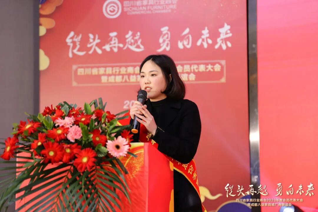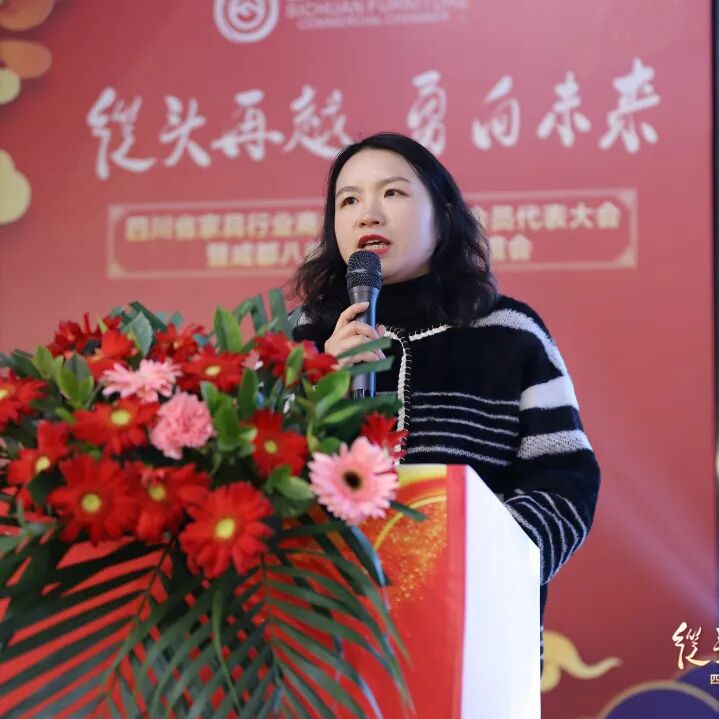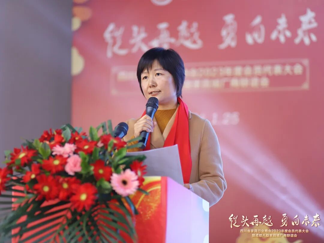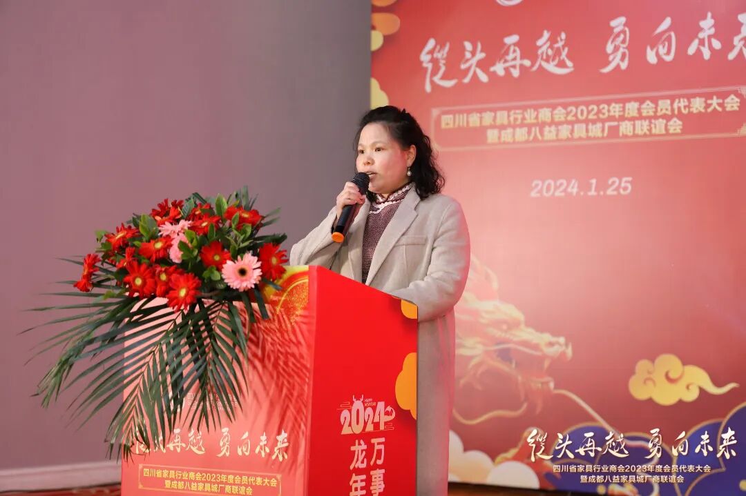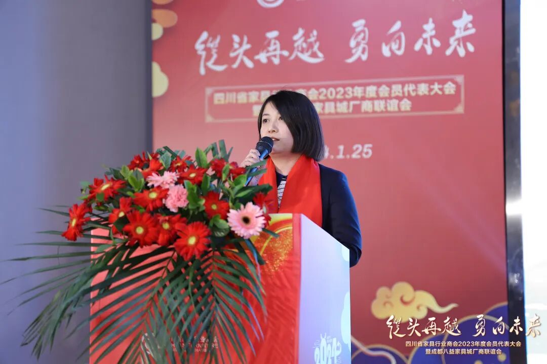 王小丽秘书长用6个关键词回顾了商会2023年度的主要工作。这一年,商会累计走访了三百余家四川家具企业,及时充分掌握四川家具行业发展动态,并累计带领上千家企业开展专业订货会,政府、行业资源对接、产销对接,各类专项培训,国内外参展、观展等数十场会员服务活动,通过实际行动推动家具行业不断前行。她表示,在新的一年里,商会将继续努力发挥商协会作用,与企业同奋斗,与行业共成长。