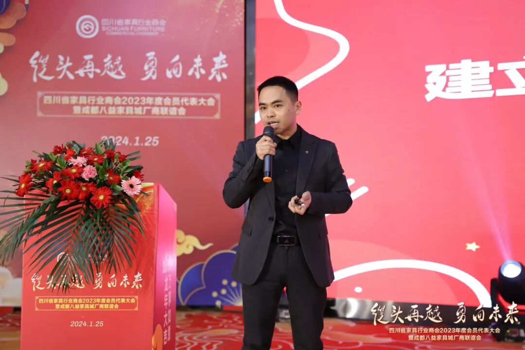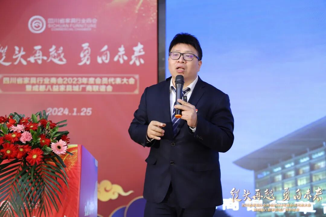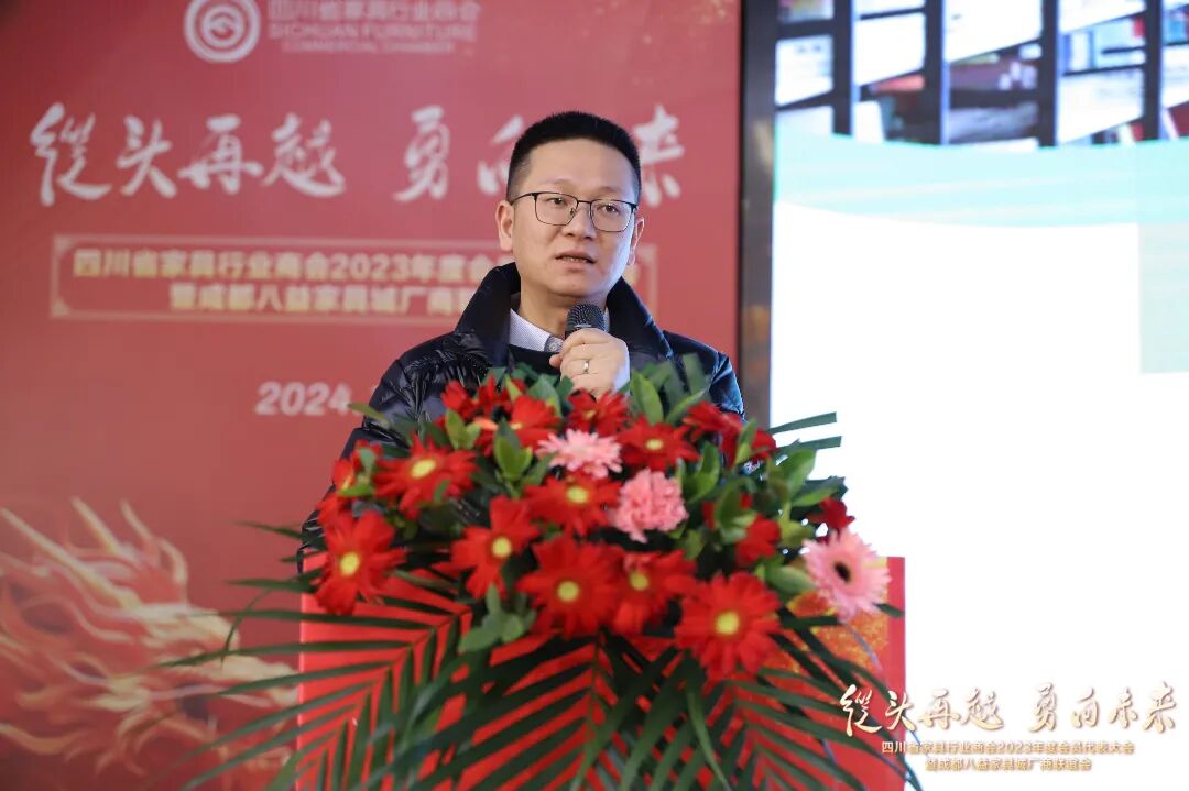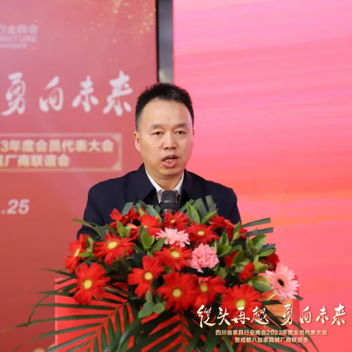 刘伟副处长介绍了2023年四川家具行业发展的情况,全省家具行业精准把握发展阶段,全面贯彻新发展理念,积极融入新发展格局,全行业产品结构调整,智改数转赋能,全行业转型加速,以全友、明珠、八益等头部企业带动作用愈加明显。他肯定了商会在精准对接制造企业与客户、坚持科技创新和标准引领、搭建平台、推动交流、推动和落实国家产业政策等方面的工作,对推动全省家具行业高质量发展做出了积极贡献。同时,新基建建设、城市住改、保障性住房建设等给家具行业带来了新发展机遇,希望商会继续发挥好桥梁纽带作用,省经信厅将一如既往地支持行业和商会的发展壮大,积极搭建平台,做好服务,共同推动产业持续向好发展。