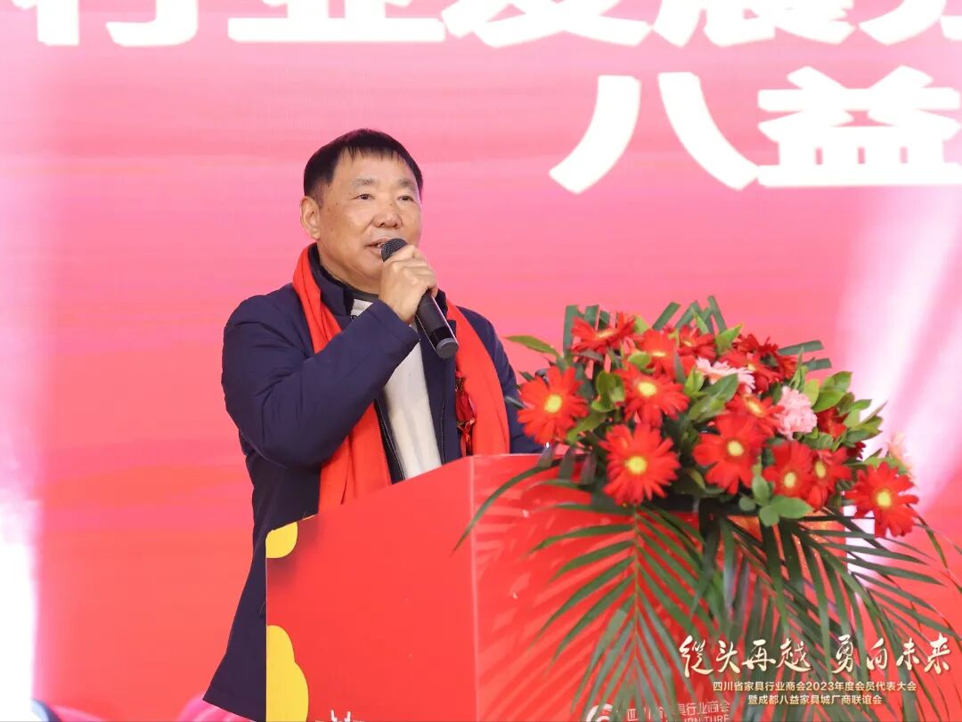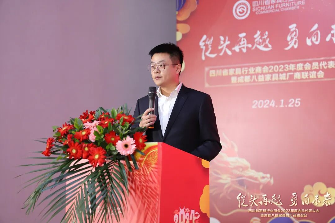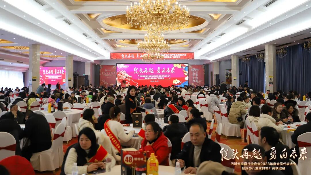 1月25日,四川省家具行业商会2023年度会员代表大会暨成都八益家具城厂商联谊会圆满举行。四川省家具行业商会会长、成都八益家具集团总裁王学茂,四川省经济和信息化厅轻工纺织处副处长刘伟,四川省工业环境监测研究院工程所所长牟建波,成都八益家具集团董事会、监事会领导,全友、明珠、双虎、太子、米斐、伊恋、天子、林度、铭图、山林、圣雅帝等会员企业代表,部分友好商协会代表,成都八益家具城厂商代表,及六百余同仁们共同出席了本次会议。