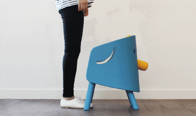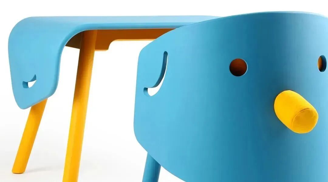 这款大象椅子,在外观设计上充分强调了大象的形体特征,比如耳朵和鼻子。其配套的桌子,桌面有大象耳朵的造型。坐在椅子上,趴在桌面上,孩子有骑大象的感觉。椅子和桌子的设计不仅是为了舒适,而且作为额外的室内装饰设计功能,其鲜艳的色彩也能为室内增添活泼的氛围。