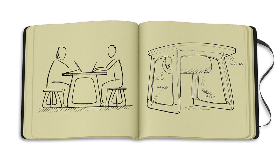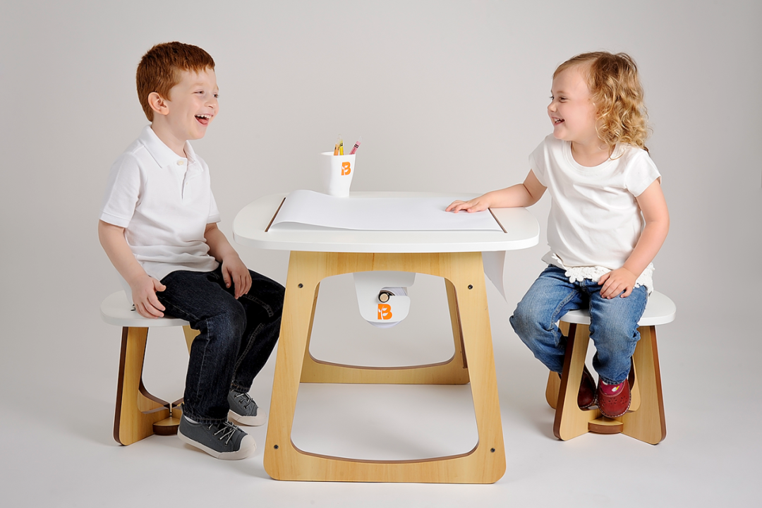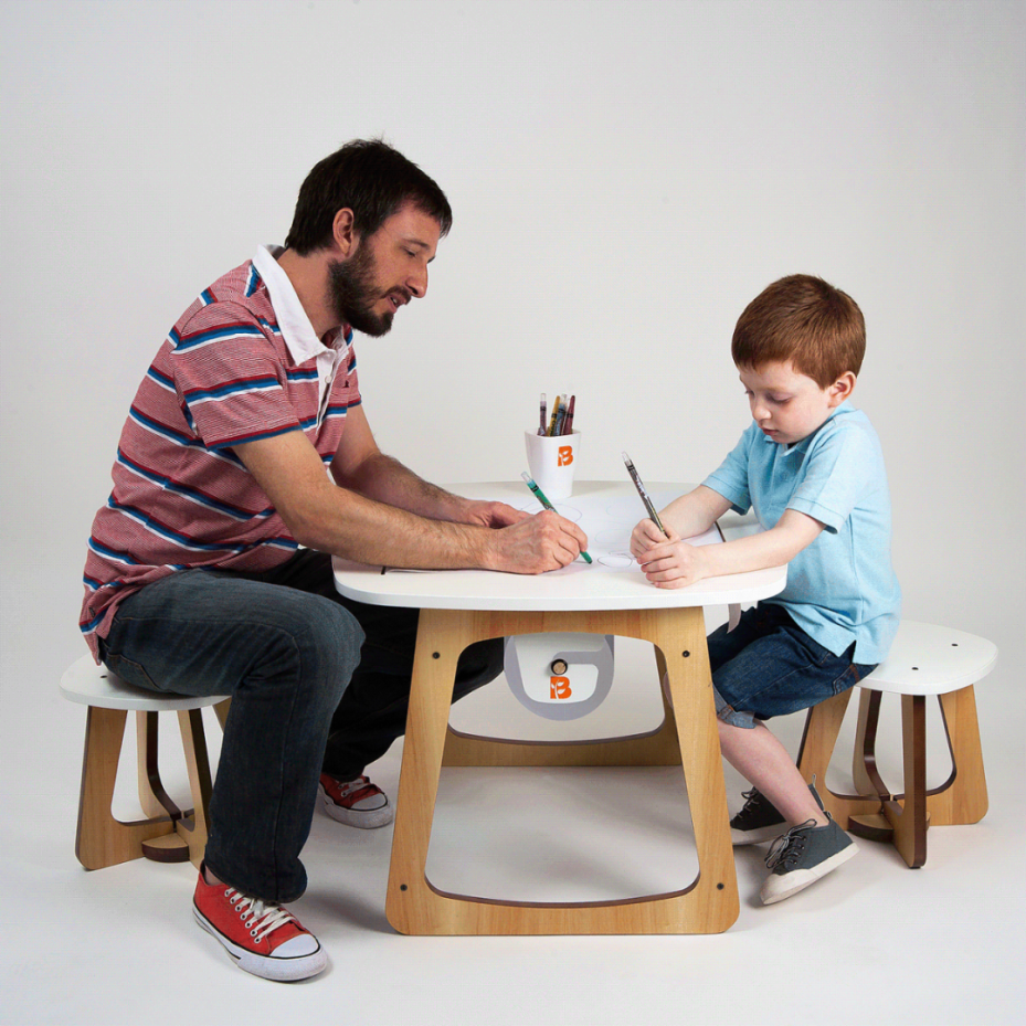 Mesa Teo是自带绘画卷纸的儿童桌椅,可以轻松地放置和取出纸张,以便桌子可以用于任何其它活动。