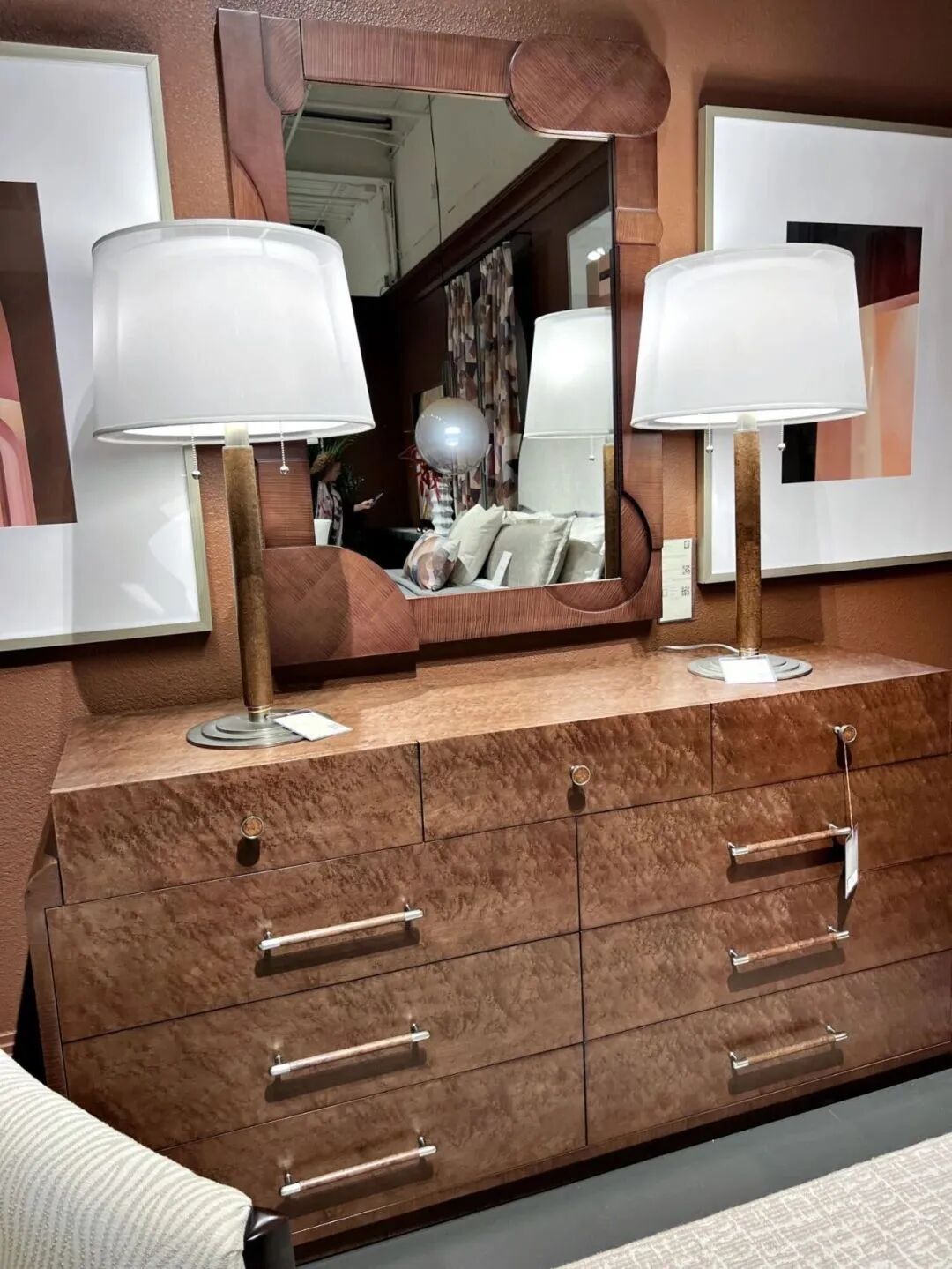 Theodore Alexander展位的这个小角落应有尽有——家具、镜子和墙壁的颜色都呈现出漂亮的坚果色。