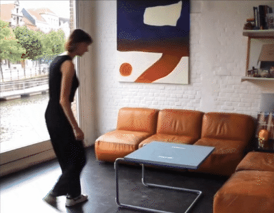 前面见识了边桌变凳子,这一款则是茶几变餐桌,可以根据生活需要将其变高或变低,也是针对当前较小居住空间的创造性解决方案,方便实用。