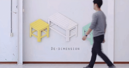 这是个能够从二维变三维的墙壁家具,不使用的时候可以将它折叠起来,挂在墙上,需要的时候再打开成凳子或者小桌子。既充分节约了收纳空间,又满足了日常需要,堪称收纳天花板,极具奇思妙想。