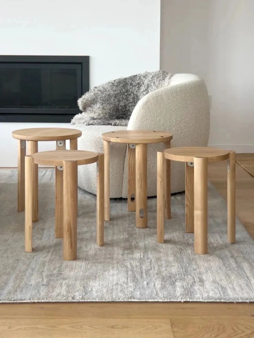 边桌是客厅常见的单品,这却是一款可以变成四个凳子的边桌,设计师采用独特的方式,将四个凳子嵌套成一张小边桌,还在其中一个外框凳子上还做了环形扣手,方便搬运。如果说前面的“veza”椅子是小户型福音,那这款凳子更是小户型的不二选择。
