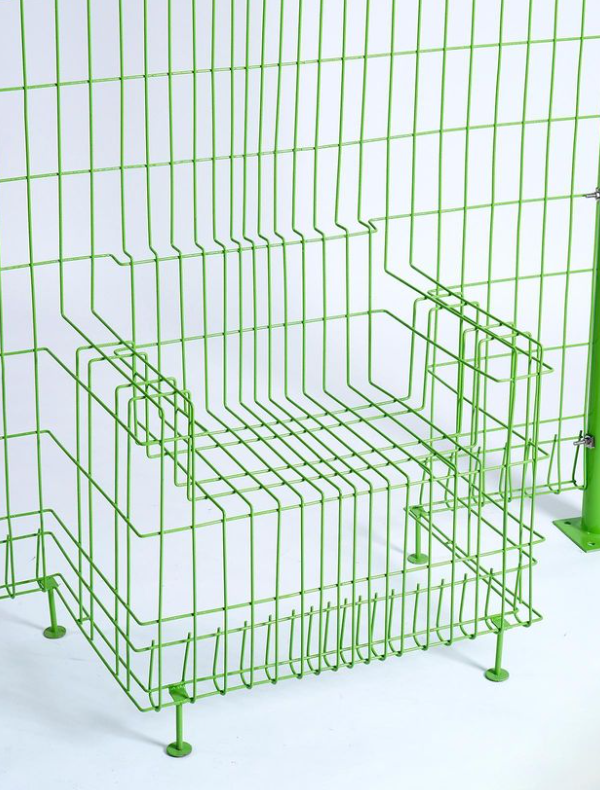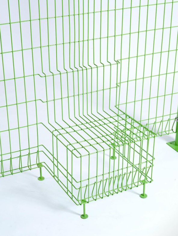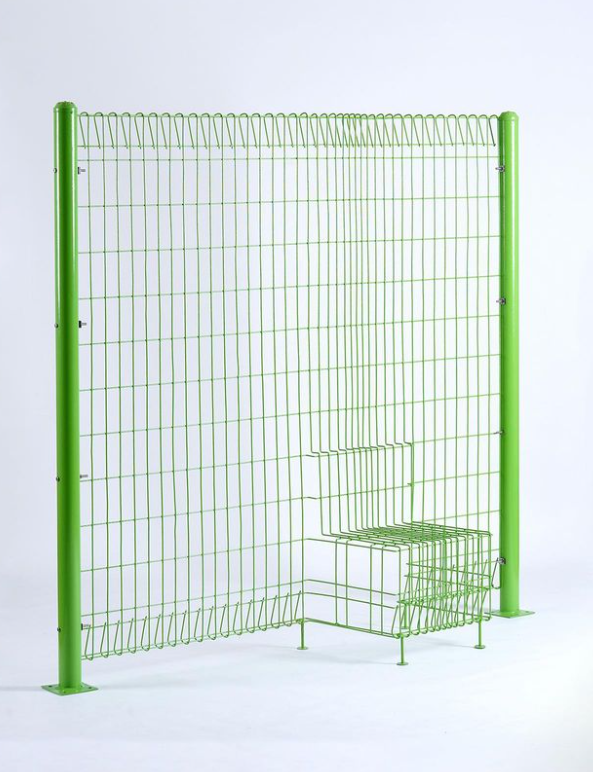 能隐身的椅子,这是一把几乎看不见的“椅子”,利用视觉效果,通过金属丝的弯曲,藏在栅栏里,不仔细看很难一眼认出这里还有把椅子。