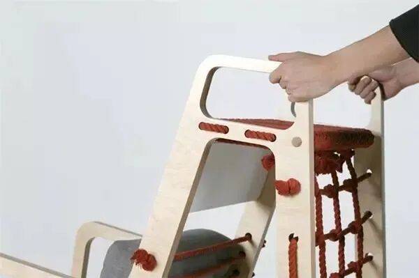 这把椅子在坐之前还得有个“激活”的操作,需要就坐者拉动绳子,“紧”了椅子才能成形,才能坐,此意为人们可以自由地探索对象本身,并赋予它意义的概念家具。